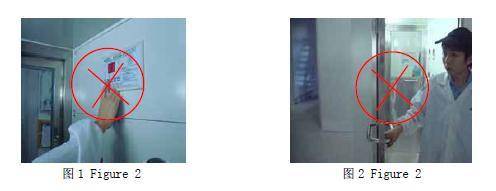 4.2.1進入風(fēng)淋室前需看清里面是否有人(風(fēng)淋系統(tǒng)工作時,不能用力使勁去推拉門,更不能強制性地將門打開,否則電鎖會被損壞)<如圖5>。