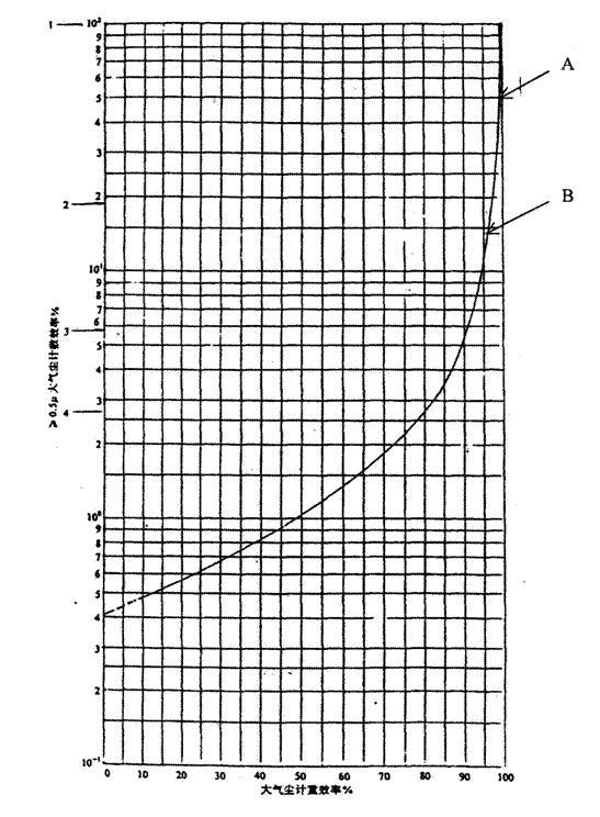 注:表中效率均是大氣塵分組計數(shù)效率(大氣塵分組計數(shù)效率是指以大氣塵為塵源,按≥0.3μm、≥0.5μm、≥O.7μm、≥l.0μm、≥2.0μm和≥5.0μm分組對過濾器進行計數(shù)效率的測定)。當大氣塵分組計數(shù)效率測定結(jié)果同時滿足表中兩個類別時,按低類別評定。 GB 12218-89 中規(guī)定I、II型過濾器效率亦可用人工塵計重法測試。