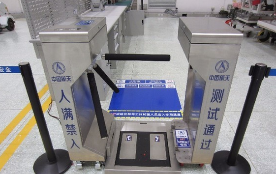 AIT中心里的“閘機(jī)衛(wèi)士”共有十幾個(gè),設(shè)置在每個(gè)航天器總裝工位的入口處。電子屏幕上清晰地顯示著進(jìn)入作業(yè)區(qū)的人數(shù),一旦達(dá)到10人,閘機(jī)衛(wèi)士便會(huì)自動(dòng)關(guān)閉,確保作業(yè)區(qū)人數(shù)得到有效控制并自動(dòng)形成出入記錄。