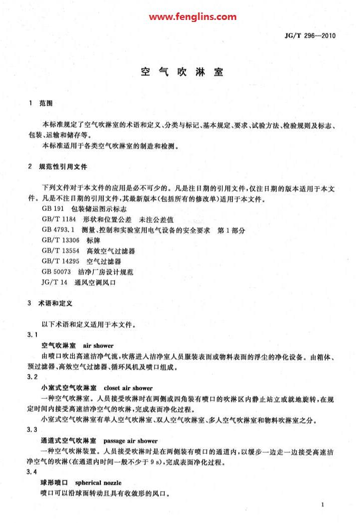 JG∕T 296-2010空氣吹淋室標(biāo)準(zhǔn)(風(fēng)淋室行業(yè)規(guī)范)